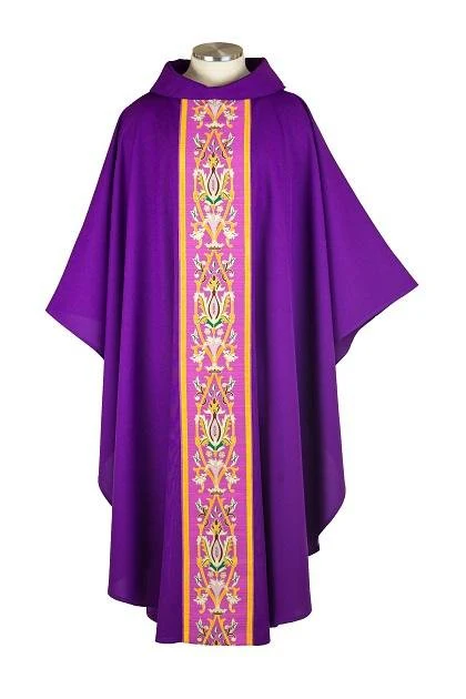 The Classic Floral Design woven tapestry chasuble. Designed after some classic vintage designs. We made this in the lighter material so that your comfort is the best. Base is Prabhu fabric Poly/Rayon blend.