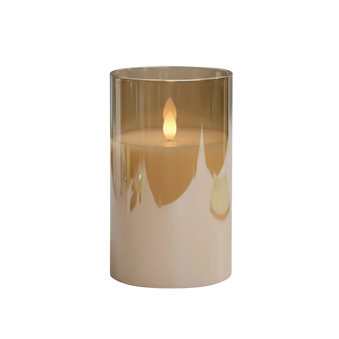 Encased in rich amber glass and filled with genuine paraffin wax, these candles offer the authentic look of a real flame while remaining completely flameless. The warm glow filters through the glass to create an inviting and soothing ambience, ideal for moments of prayer, reflection or relaxation.