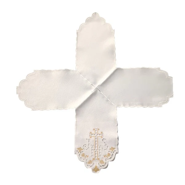 This Ciborium Veil – IHS is a beautifully crafted four-arm embroidered veil designed to cover the ciborium with dignity and reverence. Made from high-quality snow-white cloth, the fabric is specially treated to be stain-resistant, ensuring both durability and a pristine appearance for sacred liturgical use.