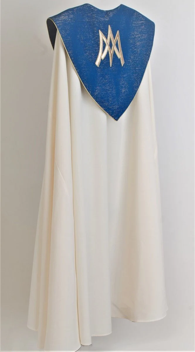 Indulge in the unparalleled beauty of the Marian Lucerne Trimmed Cope, adorned with intricately hand-embroidered designs. For a complete ensemble, pair it with the humerial veil also offered.