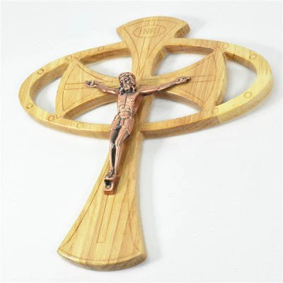 This natural wood crucifix on stand features a beautifully crafted figure of Jesus Christ on the Cross, offering a timeless and reverent expression of faith. Its warm natural wood tones highlight the simplicity and devotion of this sacred piece.