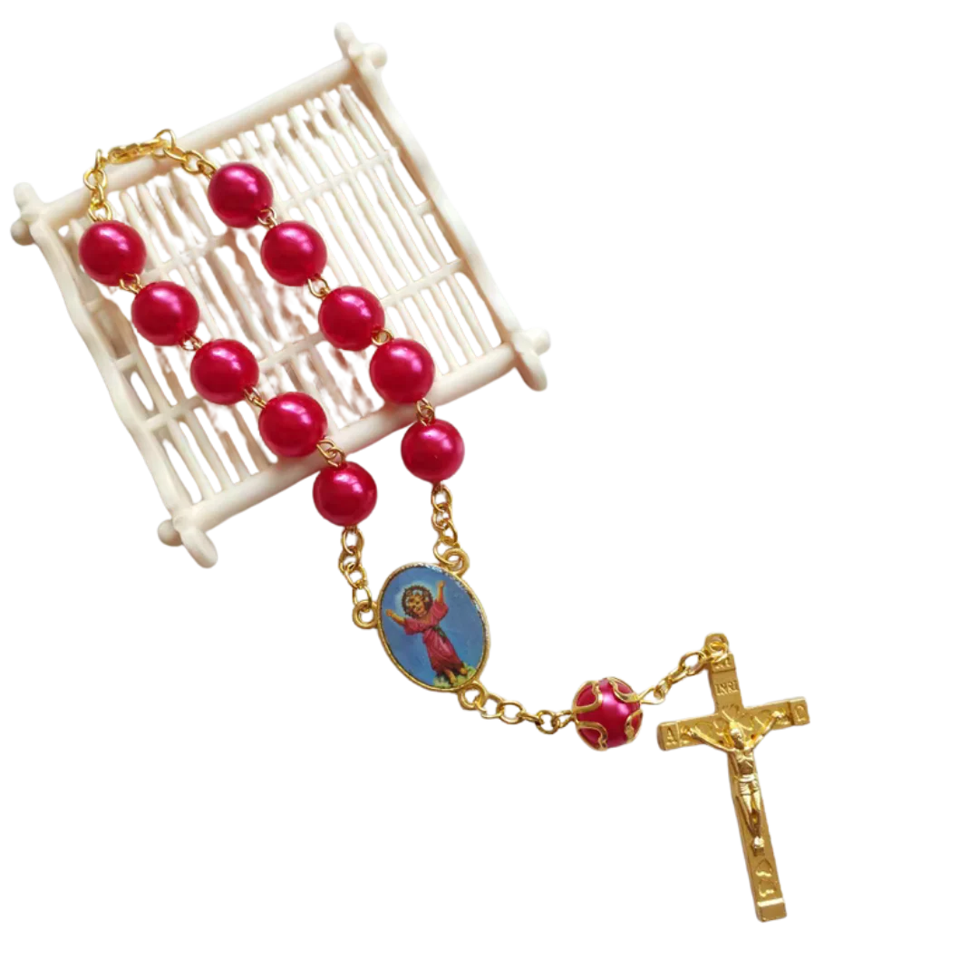 Featuring luminous faux pearl beads, this handmade decade rosary is accented with a gold-plated crucifix and a devotional medal (design may vary). Its compact size makes it ideal for carrying in a pocket, purse, or car, ensuring prayers are always close at hand. The polished pearl finish adds elegance, while the sturdy gold-tone chain ensures durability for daily use. Perfect for children, adults, or as a meaningful religious gift.
